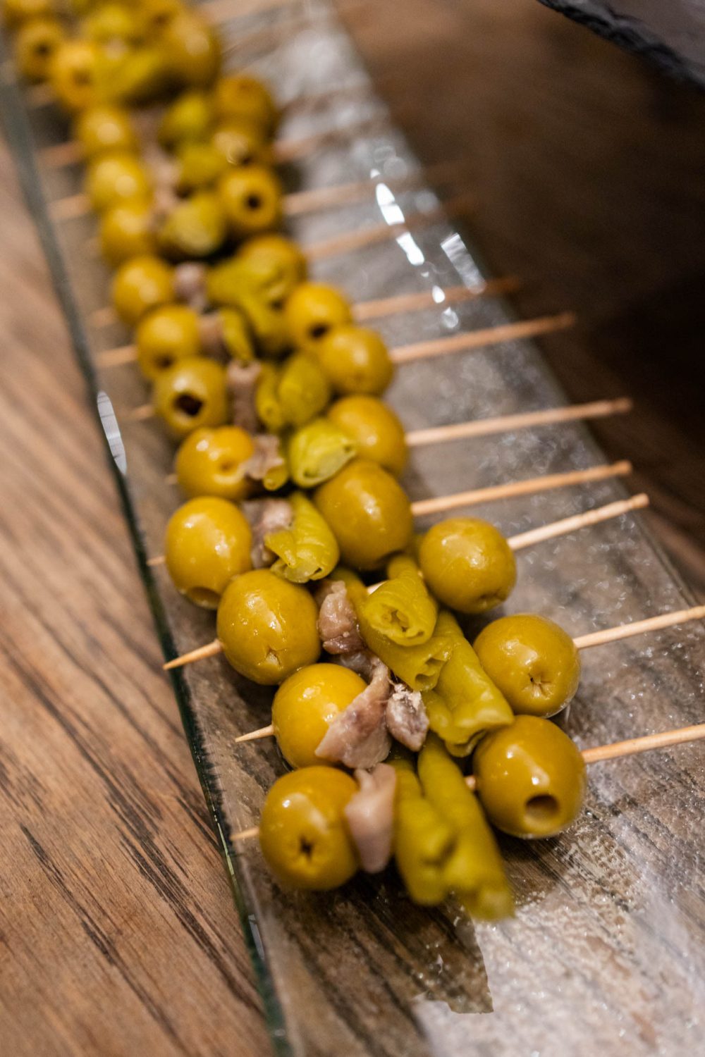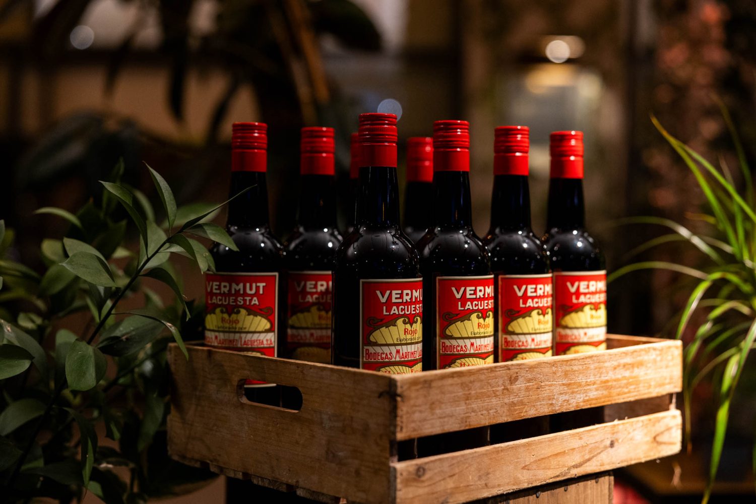 Utilizamos un encantador carrito rústico de madera y expositores a diferentes alturas para crear un bodegón irresistible. Las botellas de vermut premium descansan sobre hielo en cubiteras vintage, acompañadas del clásico sifón, mientras que los aperitivos se sirven con un cuidado toque estético: cucuruchos de papel kraft rebosantes de patatas churreras crujientes, coloridas banderillas de encurtidos en bases de cristal y deliciosos canapés tradicionales.