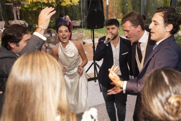 La llegada de Miguel y Clara a La Quinta de Jarama marcó el inicio de un día lleno de emoción.La bienvenida dio paso a un «cóctel en el porche que se convirtió en uno de los momentos más recordados del día. La setas de calor, la música en directo y la perfecta distribución de los puestos permitieron disfrutar cómodamente de la gastronomía, muy elogiada por los invitados, especialmente el puesto de cervezas, siempre frías y estratégicamente ubicado.»