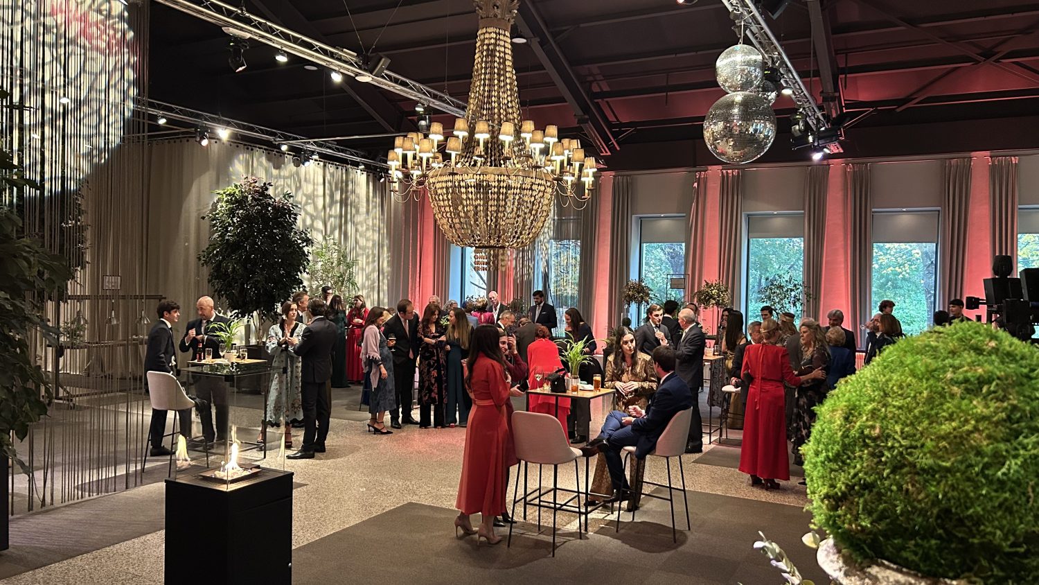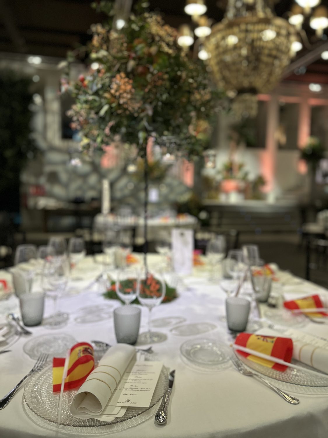 La iluminación envolvente, con juegos de sombras y lámparas majestuosas, creó un ambiente cálido y sofisticado, perfecto para una celebración tan especial