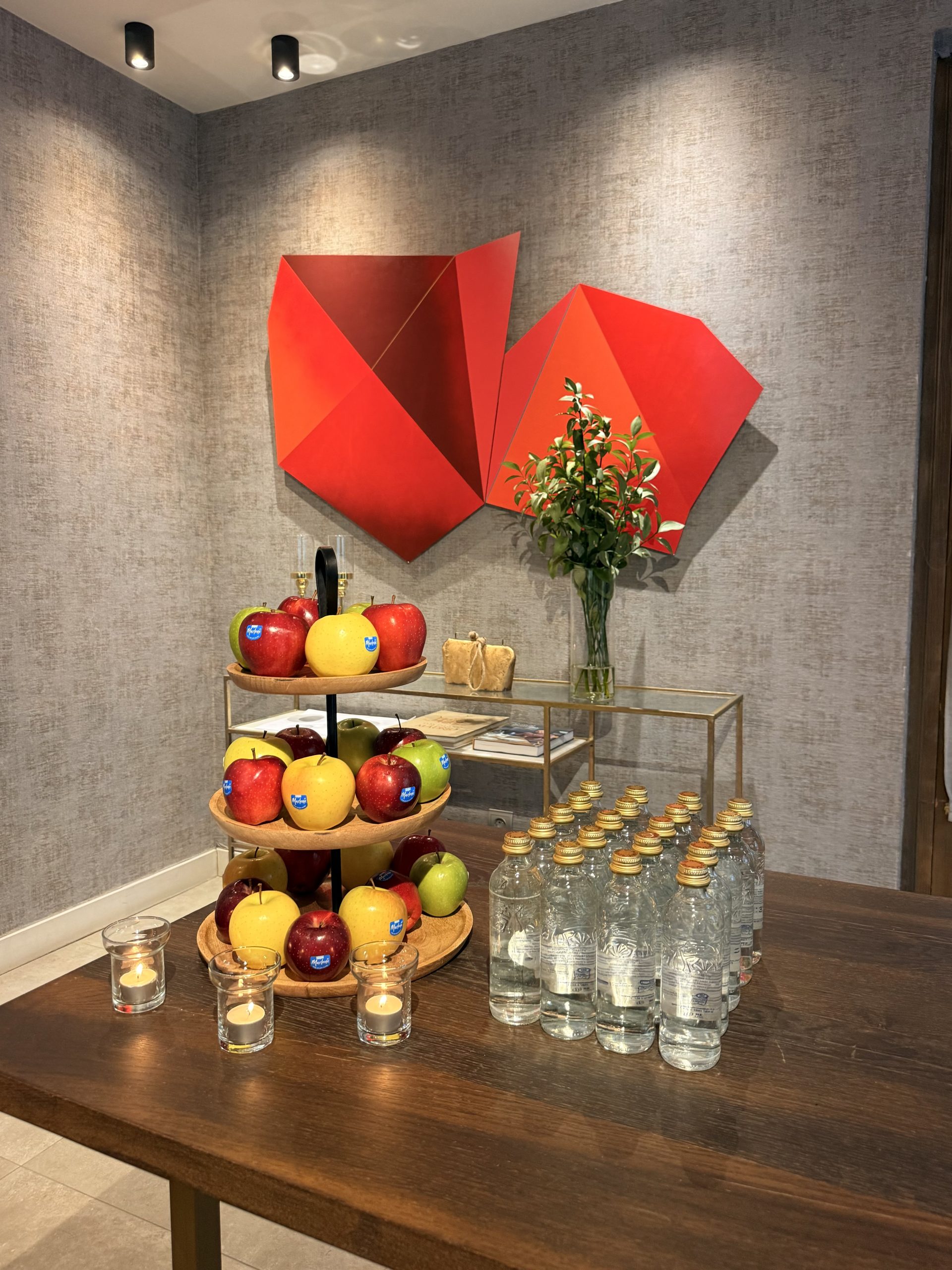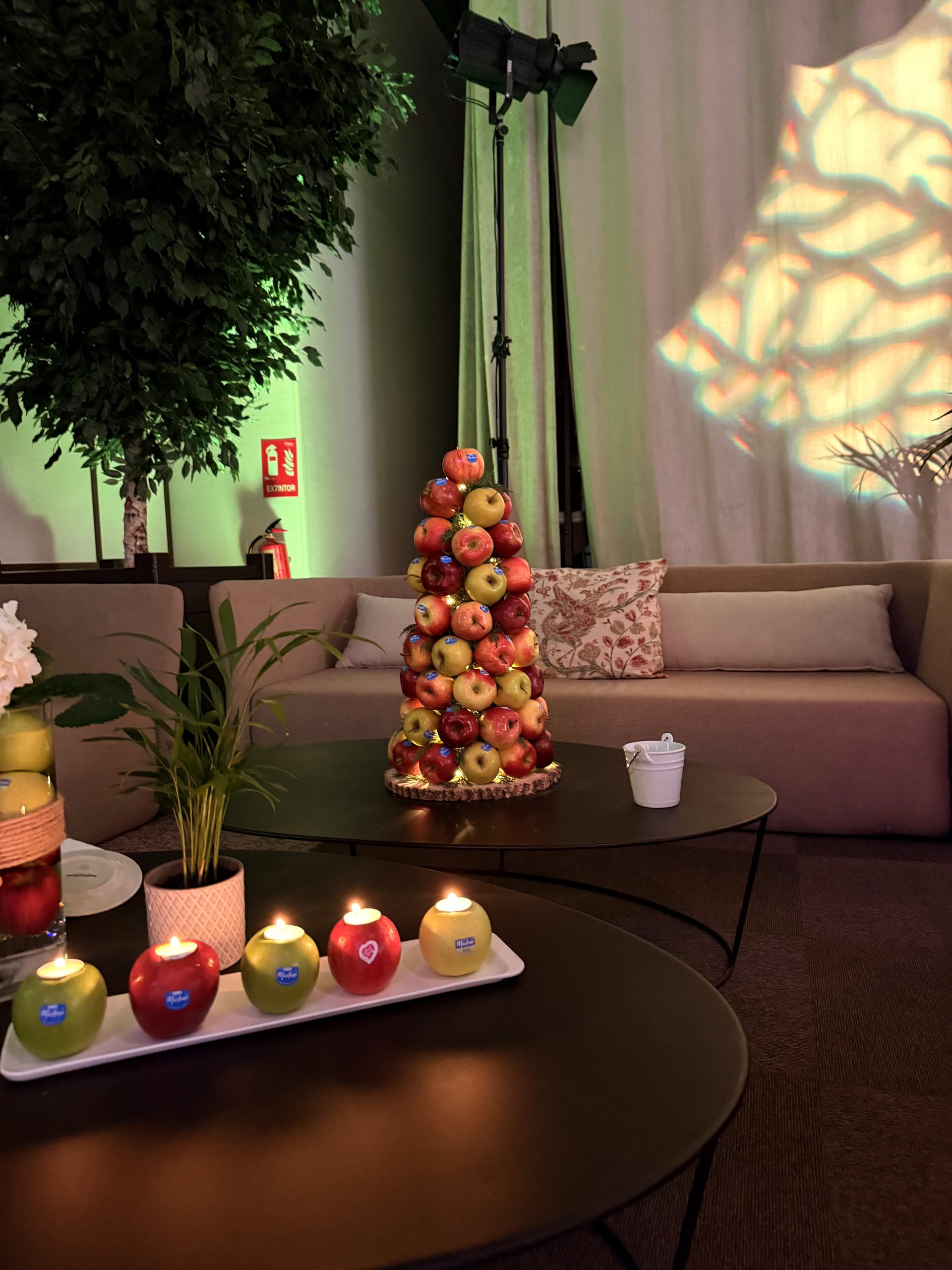 Desde la llegada, los invitados fueron recibidos en un entorno cuidado al detalle, con una decoración inspirada en los manzanos y en la esencia alpina que caracteriza a la marca. Los tonos verdes, la madera y las flores creaban una atmósfera cálida y acogedora, ideal para celebrar un aniversario tan significativo.